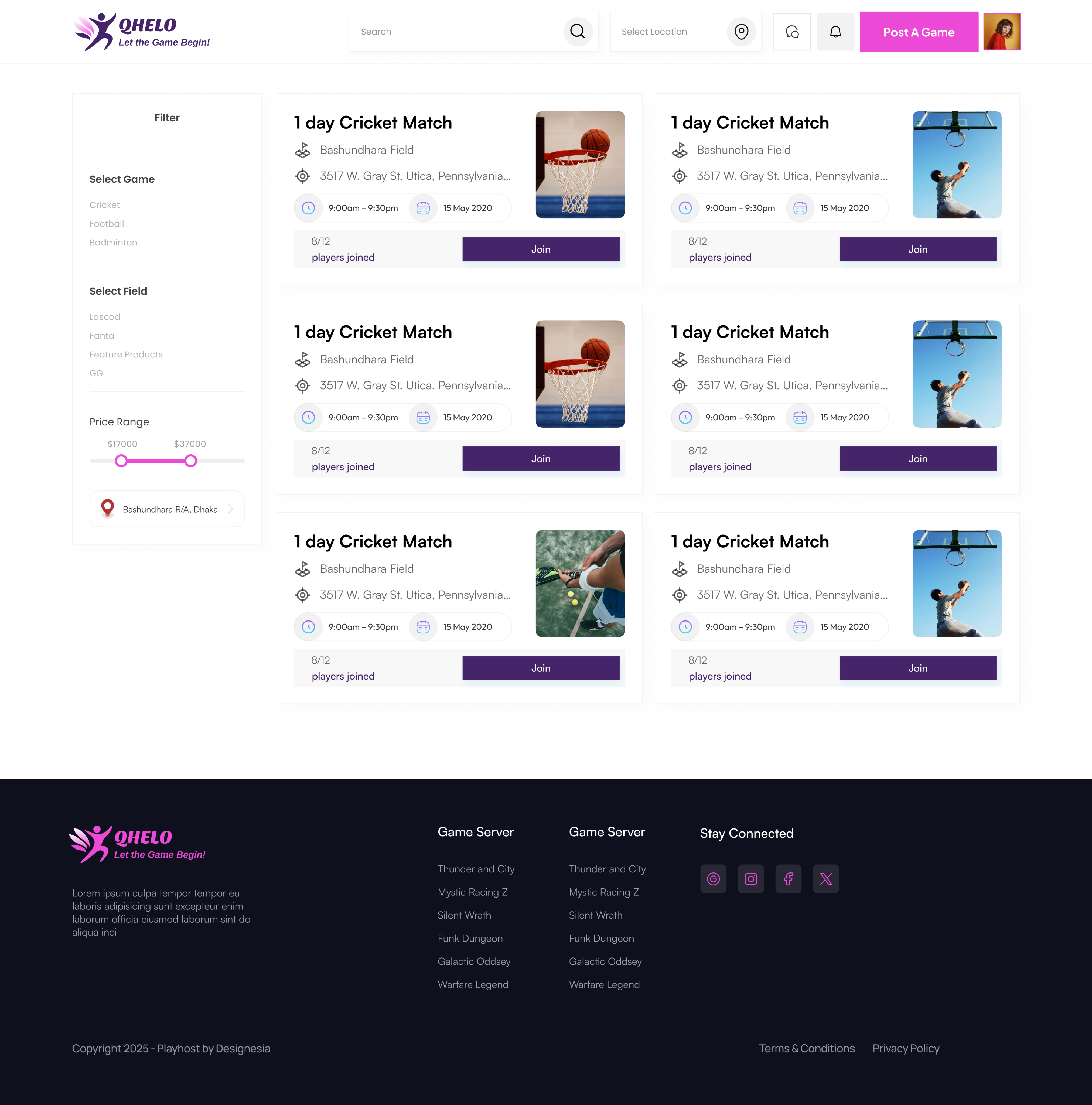 Bangladeshi sports app for finding, joining, and hosting sports games with field booking and player ratings